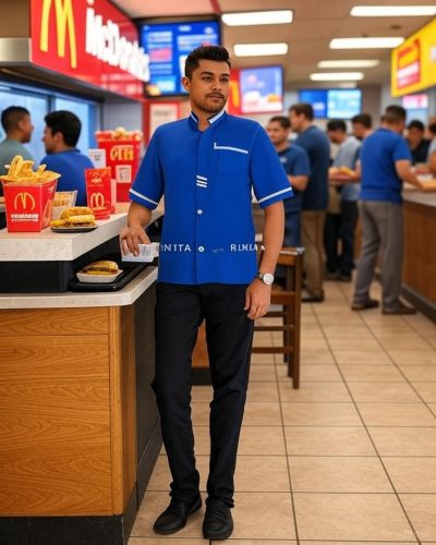 فضای غیررسمی و پویای فستفودها، نیاز به لباسهایی دارد که هم سبک باشند و هم بهآسانی قابل تشخیص. رنگهای روشن، لوگوهای چاپی، کلاه بیسبالی و طراحی آزاد از ویژگیهای لباسهای رایج در این حوزه است.